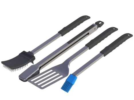 Das Baron Grillbesteck enthält einen Wender, eine verschliessbare Grillzange, einen Silikonpinsel und eine Reinigungsbürste. Der integrierte Spritzschutz bei der Reinigungsbürste sorgt dafür, dass beim ausbürsten Ihrer Grillroste kein Schmutz in Ihre Richtung geschleudert wird.