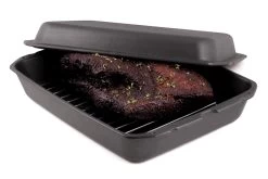 Das interne Bratgestell des Bräters distanziert das Fleisch vom Boden, um seine Säfte und andere Flüssigkeiten zum Aromatisieren verdampfen zu lassen. Dadurch wird das Fleisch besonders zart und saftig.