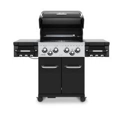 Der Regal™ 490 black verfügt über eine sehr große Grillfläche, die mit massiven gusseisernen Grillrosten ausgestattet ist. Weiterhin ist der Grill mit 5 Edelstahl Dual-Tube™ Brennern, Flav-R-Waves, einem geschlossenen Unterwagen, Edelstahlseitenablagen, sowie einer LED-Knopfbeleuchtung ausgerüstet. Die Türen sind in schwarz lackiert und der doppelwandige Deckel ist schwarz emailliert.