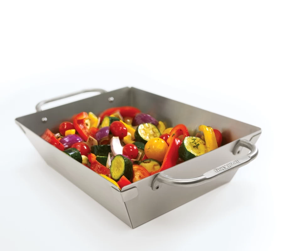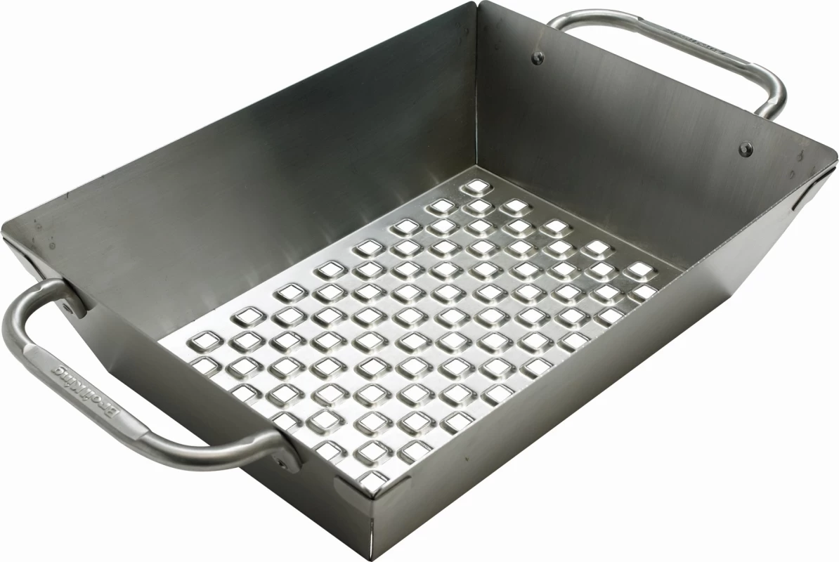 Gefertigt aus 1,2 mm dickem Edelstahl und mit 10 mm dicken Edelstahlgriffen versehen, ist dieses robuste Zubehör ideal für den Einsatz an Ihrem Grillgerät. Die quadratische Perforation am Boden des Woks verhindert ein Anhaften des Grillgutes.