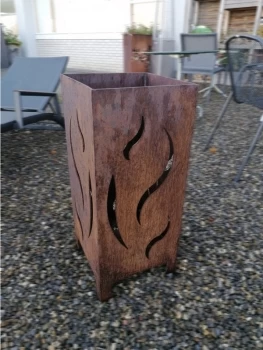 Der elegante Feuerkorb, eignet sich perfekt für ein kleines Feuer.