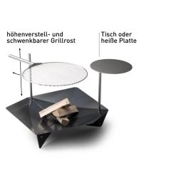 Die TRIPLE Feuerschale erinnert an eine offene Feuerstelle. Drei identische, in sich facettierte Segmente aus Corten-Stahl vervollständigen sich, in wenigen Handgriffen, zu einem soliden grossen Ganzen. Geniesse die Wärme und die Gemütlichkeit eines offenen Feuers.