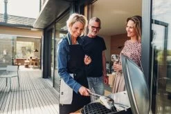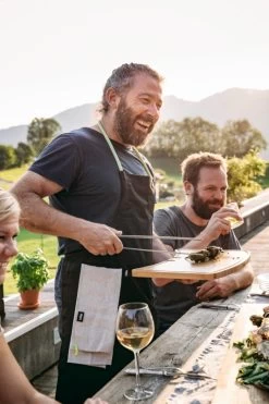 Das robuste und pflegeleichte Material der höfats Grillschürze passt sich dank dem durchgehenden Seil, welches vom Nacken über die Seiten zur Hüfte verläuft, perfekt an jede Körpergrösse und -form an. Zudem hat die Schürze eine integrierte Tasche und einen Handtuch-Riemen. Dazu gibt es ein hochwertiges Handtuch aus 100 % Leinen, welches schon mit dabei ist.