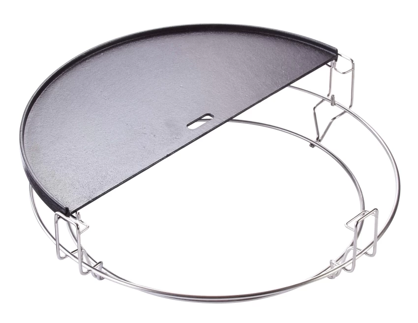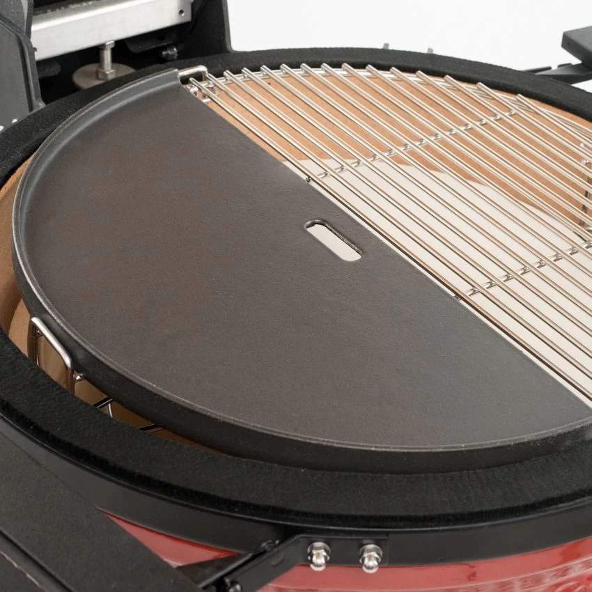 Die Kamado Joe Halbmond-Grillplatte ist eine Innovation und hat zwei Oberflächen, eine glatte und eine gerippte, für die größtmögliche Vielseitigkeit beim Kochen mit dem Eisen. Das langlebige Gusseisen bietet eine hervorragende Wärmespeicherung und kann zusammen mit dem Kochsystem Divide & Conquer Flexible Cooking System verwendet werden. Mit dem Oberflächenzubehör von Kamado Joe können Sie unendlich vielseitig kochen.