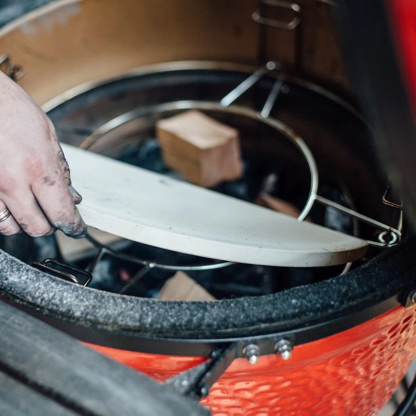 Das Kamado Joe®-Zubehörgestell wird in Verbindung mit dem revolutionären Divide & Conquer Flexible Cooking System verwendet. Dieses Gestell passt bequem in das Divide & Conquer Flexible Cooking System und lässt sich mit einer Tropfschale erweitern. Außerdem eignet er sich hervorragend als Ständer für den Kamado Joe-Pizzastein und anderes Kamado Joe-Zubehör.