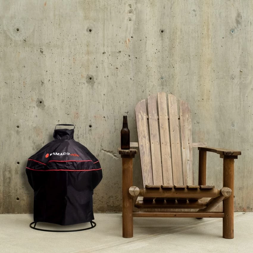 Mit der Original Abdeckhaube ist der Kamado Joe Grill das ganze Jahr über vor Sonneneinstrahlung und Witterungseinflüssen geschützt. Die Grösse der Hülle lässt sich anpassen. Sie besteht zu 100% aus langlebigem, düsengefärbten Polyester mit einer wasserundurchlässigen, PVC-freien und farbechten Beschichtung. Grösse ist geeignet für den Kamado Classic Joe.