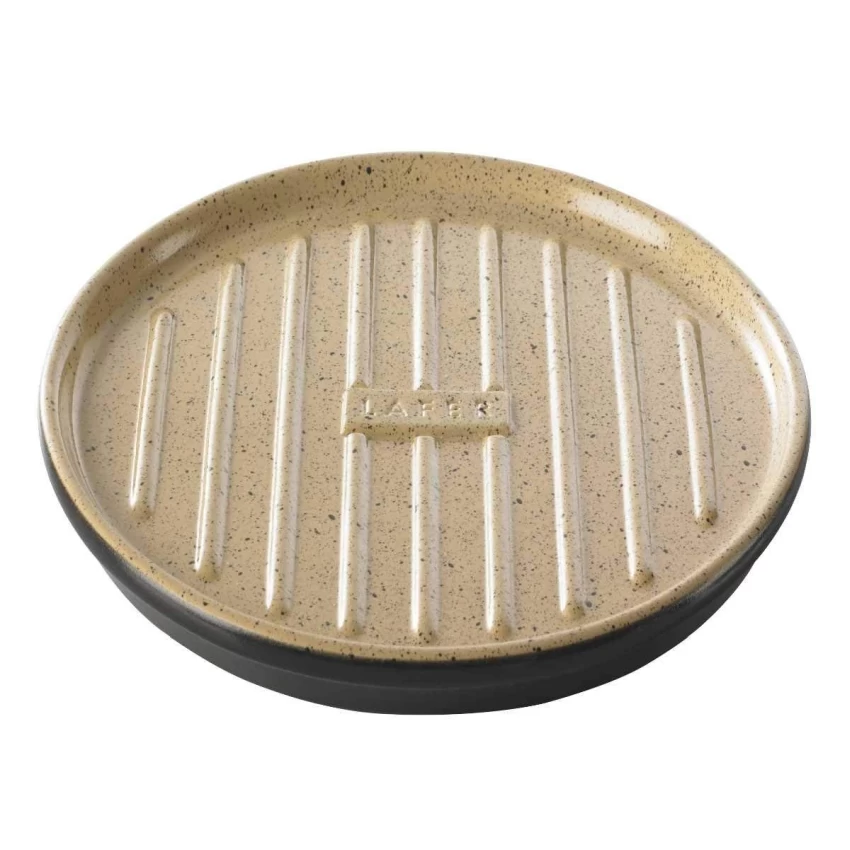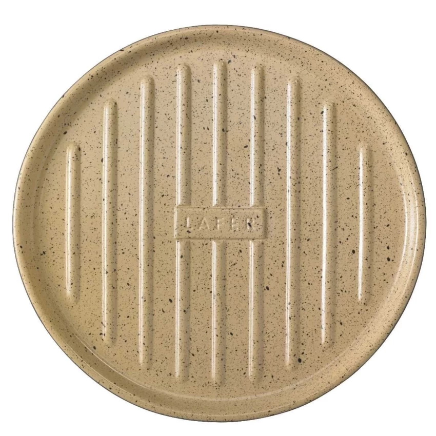Der RÖMERTOPF®-Plancha mit Grill-Stegen rund für perfektes Grillen von Fleisch, Fisch, Würstchen, etc. Aus feuerfestem Ton, aussen schwarz hochglänzend, innen transparent-natur glasiert.