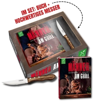 Das ultimative Männergrillbuch! Dieses Set ist das perfekte Geschenk für den Freund, Ehemann, Kumpel oder Mitbringsel für die Grillparty – Für nur 35.90 gibt es ein erstklassiges Grillbuch mit außergewöhnlichen, cool fotografierten Rezepten und ein edles Steakmesser von Tramontina mit einem Echtholzgriff und einer superscharfen Klinge aus rostfreiem Edelstahl. “Männer am Grill” trifft mitten ins Herz von Männern, die exzessiv grillen und die stundenlang über Flank Steaks und Dry Aged Fleisch, ihre High Tech-Grills und teure Messer reden können! Das Buch: So sieht ein Grillbuch für Männer aus: Schnörkellos, authentisch, eine Spur archaisch, ohne Firlefanz und mit einem einzigen Protagonischen: Fleisch. Wenn Männer grillen, ganz ohne Rücksicht auf Nährwerte und Vegetarier, kommt genau das dabei heraus. Garniert mit viel Leidenschaft, hemdsärmelig und ohne üppige vitaminkontaminierte Beilagen. Oliver Sievers weiss, dass Männer genau das mögen, und hat mit seinen Rezepten genau ins Schwarze getroffen. Einfach zuzubereiten, mit spektakulärer Optik, und etlichen Ideen, die auch Experten am Rost noch nicht kennen. Ein Buch für Männer mit Leidenschaft fürs Grillen! Das Messer: Tramontina, die traditionsreichen Messerschmiede aus Brasilien, ist genau die richtige Adresse für alle Liebhaber von hochwertigen Schneidwaren und Grill-Accessoires. Schon seit 1911 überzeugt der brasilianische Experte als Anbieter von langlebigen Messern, so dass in jeder Klinge mehr als einhundert Jahre Erfahrung und Hingabe stecken. Fleisch schneiden, wie ein Profi – mit diesem robusten und edel designten Steakmesser mit dem Griff aus FSC-geprüftem Echtholz macht das Grillen und die Fleischzubereitung noch mehr Spass! – Rezepte von World BBQ Champion Oliver Sievers aus dem deutschen Grillteam “BBQ Wiesel”- Inklusive Original Jumbo-Steakmesser von Tramontina aus Brasilien- Klinge aus rostfreiem Edelstahl, Griff aus Echtholz, FSC geprüft.
