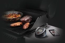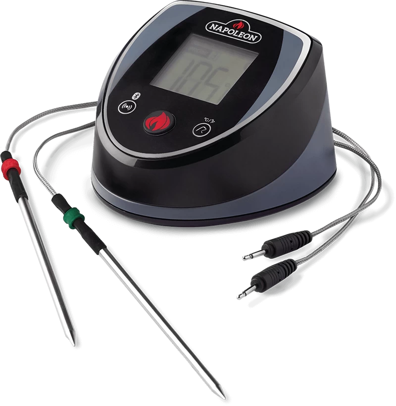 Mit dem ACCU-PROBE™ Bluetooth®-Thermometer von Napoleon wird das Grillen des perfekten Steaks oder die Zubereitung eines Bratens noch einfacher. Verwenden Sie das LCD-Display, um die Temperaturen von bis zu vier separaten Sonden zu überwachen. Dieses Bluetooth®-fähige Gerät kann eine Nachricht an Ihr Telefon übermitteln, wenn das Essen die perfekte Temperatur erreicht hat. Dank der magnetischen Basis bleibt das Grill-Thermometer dort, wo Sie es ablegen. Bereiten Sie Steaks und Braten genau nach Ihren Wünschen zu. Legen Sie Temperaturen selbst fest, um sicherzustellen, dass jeder genau das bekommt, was er möchte. Das Napoleon ACCU-PROBE™ Bluetooth® Thermometer wird mit zwei Sonden und Sondenmarkierungen geliefert. So wissen Sie genau, welches Steak auf welchen Teller geht.