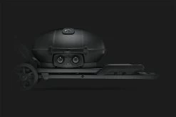 Der Phantom TravelQ™ PRO285 Propangasgrill in Mattschwarz mit Aufstellscheren setzt neue Massstäbe für mobiles Grillvergnügen und birgt einige Geheimnisse. Von der Oberseite der Haube bis hin zum Unterbau ist der Gasgrill komplett in seidig mattem Schwarz gehalten. Der Phantom TravelQ™ Gasgrill verfügt über eine hohe Haube und zwei Brenner aus Edelstahl, die mobiles Grillen auf Gourmetniveau anheben. Unter dem Deckel findet auch grosses Grillgut wie ganze Bratenstücke Platz. Mit den zwei Edelstahlbrennern haben Sie eine präzise Temperaturkontrolle und können die beiden Brenner getrennt regulieren, somit ist auch indirektes Grillen möglich. Die 37 x 54 cm grosse Grillfläche ist ausgestattet mit porzellan-emaillierten WAVE™ Gusseien-Grillrosten. Dieser Grill bietet alles, was Sie für perfektes mobiles Grillen brauchen. Der perfekte Grill für jedes Abenteuer. Dieser professionelle Grill mit seiner mobilen Ausführung ist einfach unschlagbar. Der im Lieferumfang enthaltene Warmhalterost bietet zusätzlichen Platz und erlaubt mehr Zubereitungsfläche. Der wendige, mattschwarze, einklappbare Unterbau mit geländegängigen Rädern sorgt für einfaches Aufstellen sowie kompakte Lagerung und bietet Halteriemen für Propangasflaschen. Der dunkle, mobile Phantom TravelQ™ PRO285X Propangasgrill sieht nicht nur gut aus. Er spiegelt Ihren Lebensstil wider.