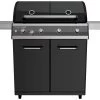 handlichen Zubehörhalter und die Option für einen Lagerplatz für Holz. Als Schneidbrett dient ein dunkelgrauer Keramik Ablage.