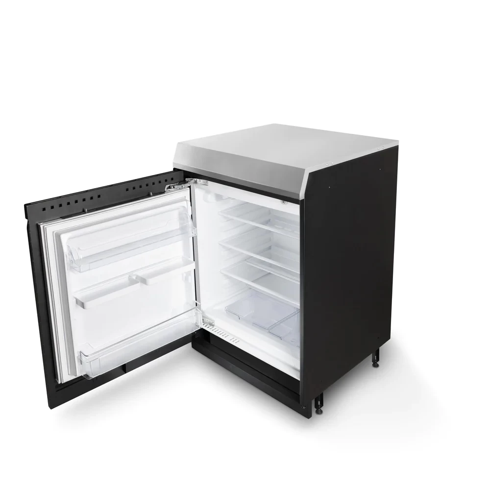 • Das Fridge-Ready-Modul hat auf der Seite des Tür-Anschlags eine sichtbare Seitenwand. Für die perfekte Optik empfehlen wir die Montage am Rand deiner Outdoor-Küche.