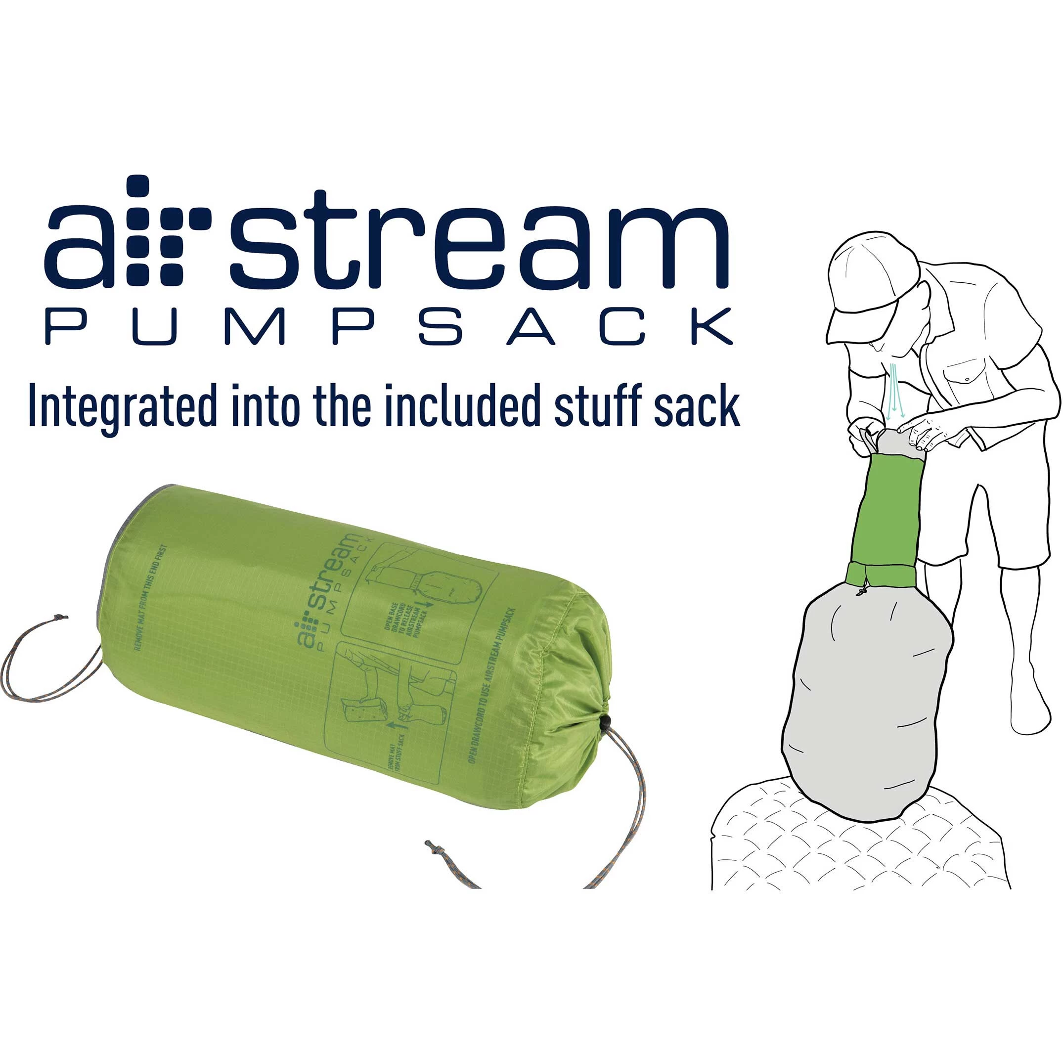 - Includes an Airstream™ Pump that is integrated into the stuff sack for quick and easy inflation