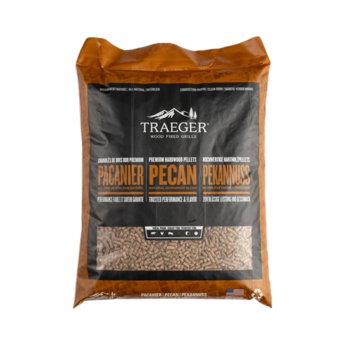 Unser fachmännisch gefertigtes, natürliches Pekannuss-Hartholz brennt stets langsam und gleichmässig. Das Feuchtigkeits-Rauch-Verhältnis von Traeger bleibt bei 5 % (auch bekannt als Sweet Spot), was bedeutet, dass die Gerichte einen kräftigen und gleichmässigen Räuchergeschmack erhalten. Dieser Brennstoff ist die richtige Wahl, um Schweinefleisch, Geflügel, Gemüse, Rindfleisch und Lamm auf natürliche Weise mit einem süssen, würzigen und kräftigen Geschmack zu verfeinern. *Die Verpackung kann variieren.