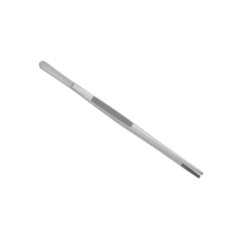 Die vordere Greiffläche der triangle® Pinzette ist geriffelt, der Arbeitsteil besteht aus rostfreiem Edelstahl. Mit dieser triangle® Pinzette können Sie kleine und empfindliche Lebensmittel wie kurz gebratene Medaillons, Pilze oder Auberginen wenden.