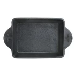 Diese Auflaufform verfügt links und rechts über jeweils einen Griff und besteht ganz aus Gusseisen. Dank ihres kompakten Formats lässt die Form sich gut zusammen mit anderen Produkte verwenden.