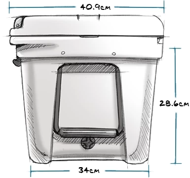 Platz für 21 Büchsen Bier oder 11 kg Eis